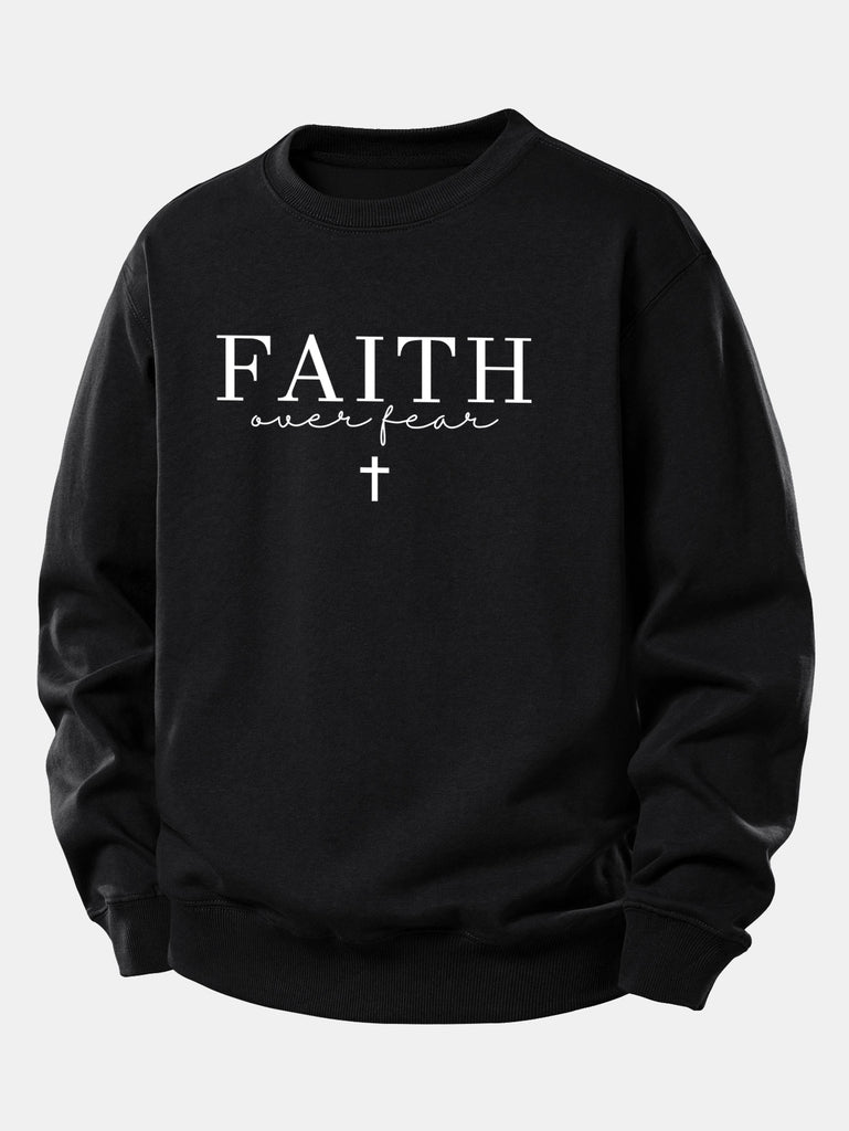 Faith Over Fear Cross Print Relax Fit Sweatshirt