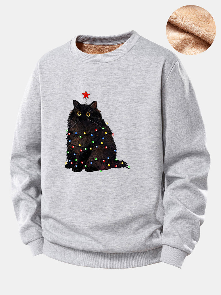 Sweatshirt de Natal com Estampa de Gato Preto e Forro de Pêlo Teddy